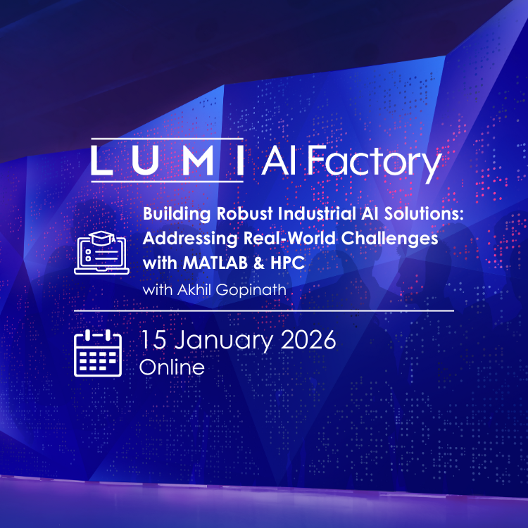 LUMI AI Factory invites you to attend the "Building Robust Industrial AI Solutions: Addressing Real-World Challenges with MATLAB & HPC" course, which will take place online on January 15, 2025.
